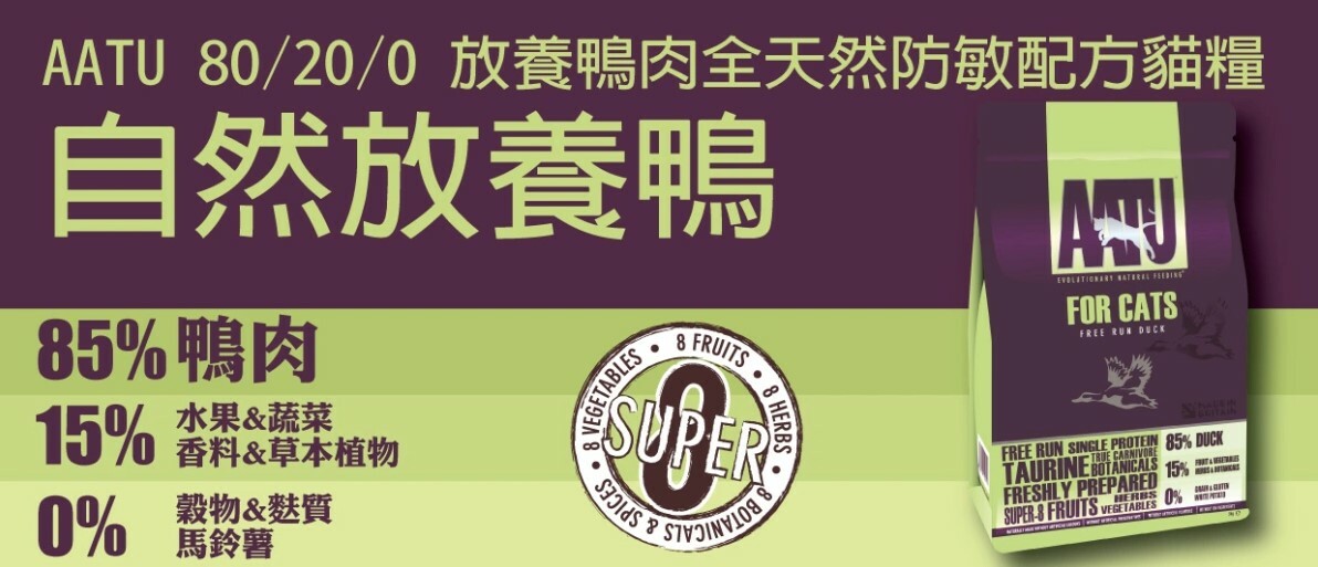 😺AATU選用自然放養鴨,沒有受激素的刺激生長,是優質的蛋白質來源,加上肉質特有的香味,能夠刺激貓咪食慾,是嗜口性極高和低敏原的優質寵物食品食材。