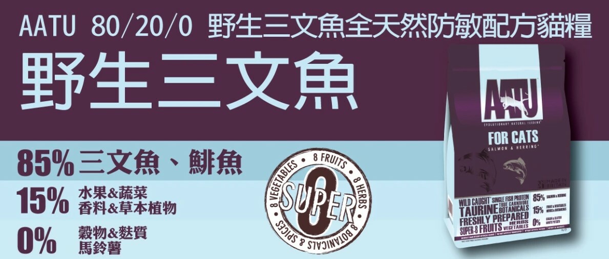 😺AATU選用野生三文魚(非捕魚季節會選用養殖三文魚),魚肉是眾多寵物食品食材中較為昂貴的原材料。魚肉是最容易消化的肉類,是優質蛋白質來源,同時營養價值也是最高。