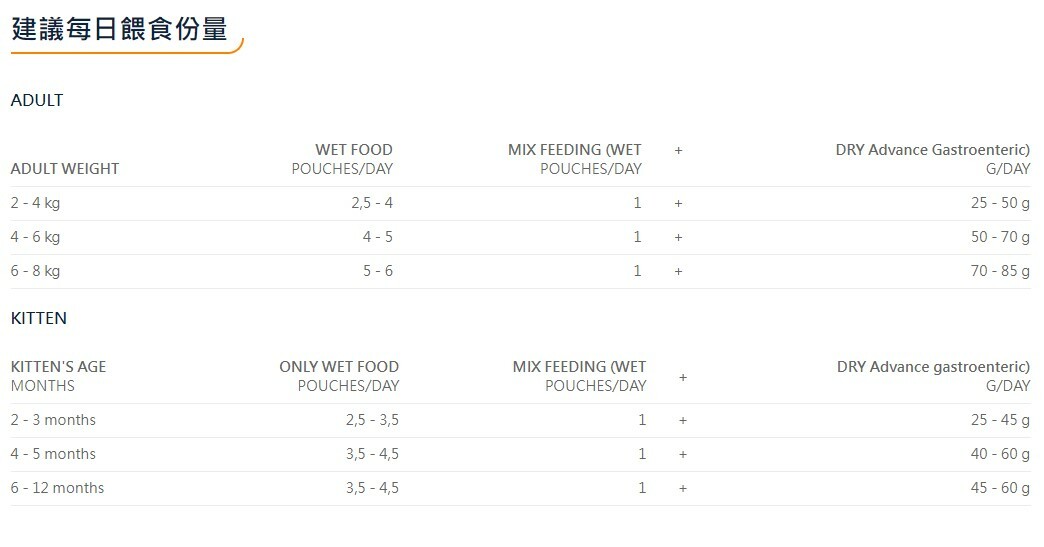 ADVANCE處方貓糧 – 腸胃專用是幼貓和成貓的完整飲食產品 在胃腸道疾病和外分泌性胰腺衰竭的情況下,有效彌補消化系統的變化。此配方由高消化率的成分、適度的脂肪及增加的鈉和鉀含量配製而成,精選的蛋白質來源和益生元,有效改善及增加腸道益菌,以降低對該產品產生不良反應的風險。
