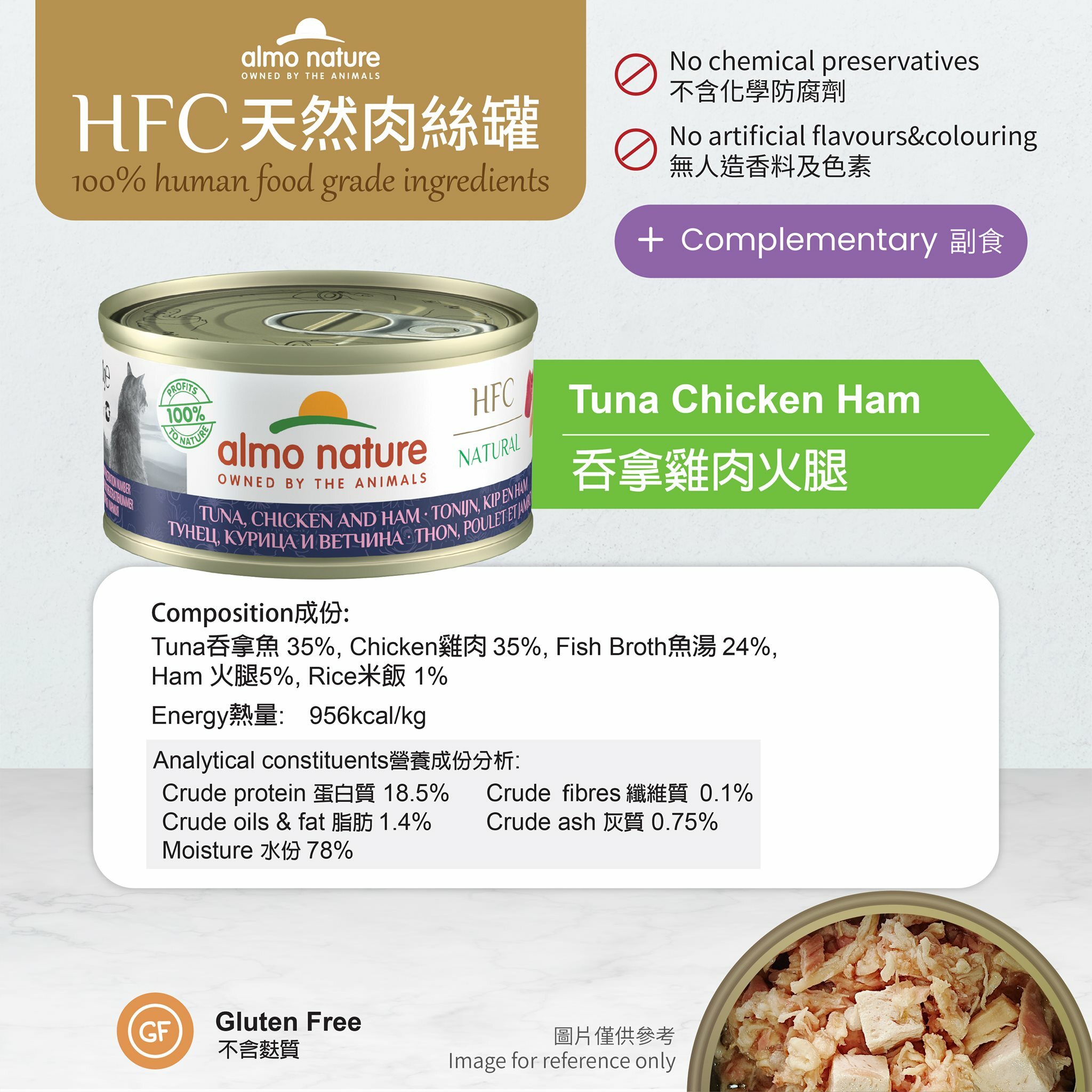 Almo Nature - HFC Natural 吞拿魚+雞肉+火腿 Tuna, Chicken and Ham 150g