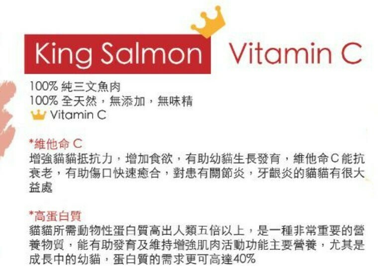 有助增強抵抗力,增加食慾,亦有助有貓生長發育,維他命C能抗衰老, 幫助傷口快速遇合,對還有關節炎,牙齦炎嘅貓貓有很大幫助