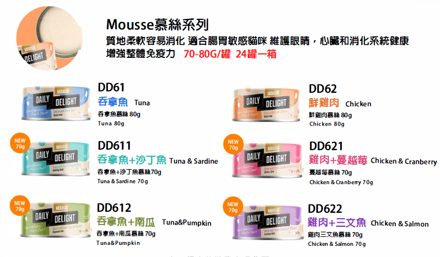 吞拿魚、南瓜、水、瓜爾膠、吞拿魚提取物、牛磺酸、L-賴氨酸