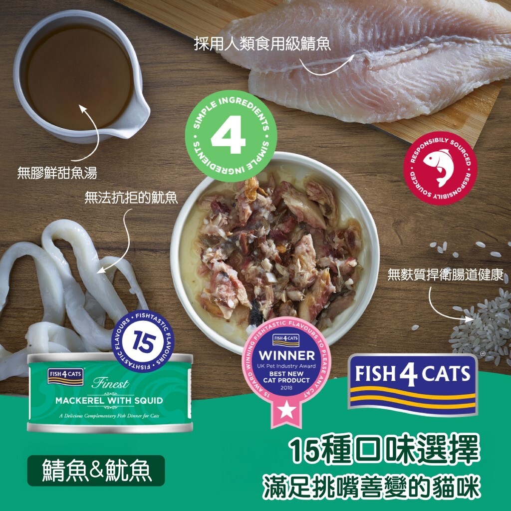 Fish4Cats - 鯖魚塊魷魚 Mackerel with Squid (淺綠) 70g