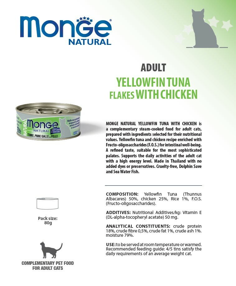 Monge – [鮮味肉絲系列] 黃鰭吞拿魚配雞肉 Tuna with Chicken 80g (青)
