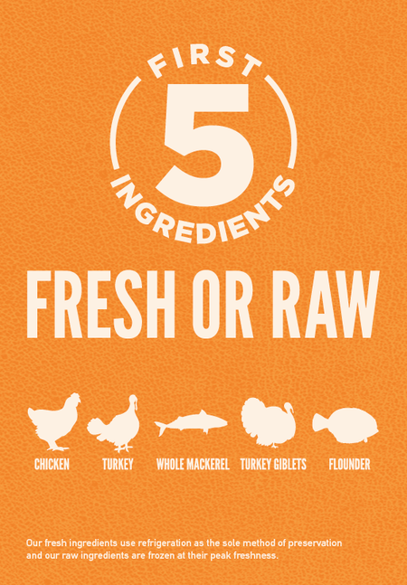 渴望天然糧成分標前10項皆為放牧禽類、野生獵捕魚種 採用人類食用等級之食材,90度烘乾脫水肉品,鎖住營養、保留完整風味