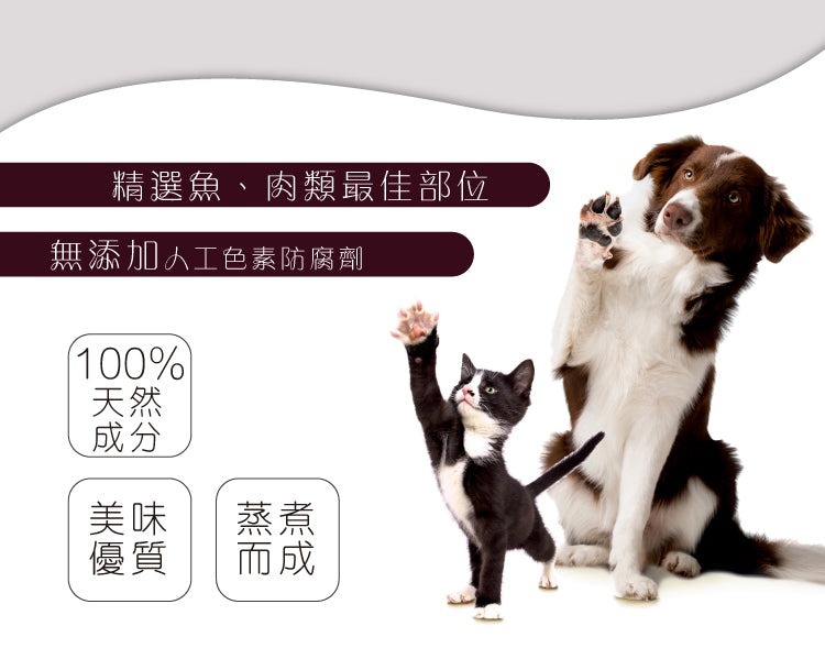 😺嚴選魚和肉最好的部份,經過蒸煮和嚴格的人手加工程序。