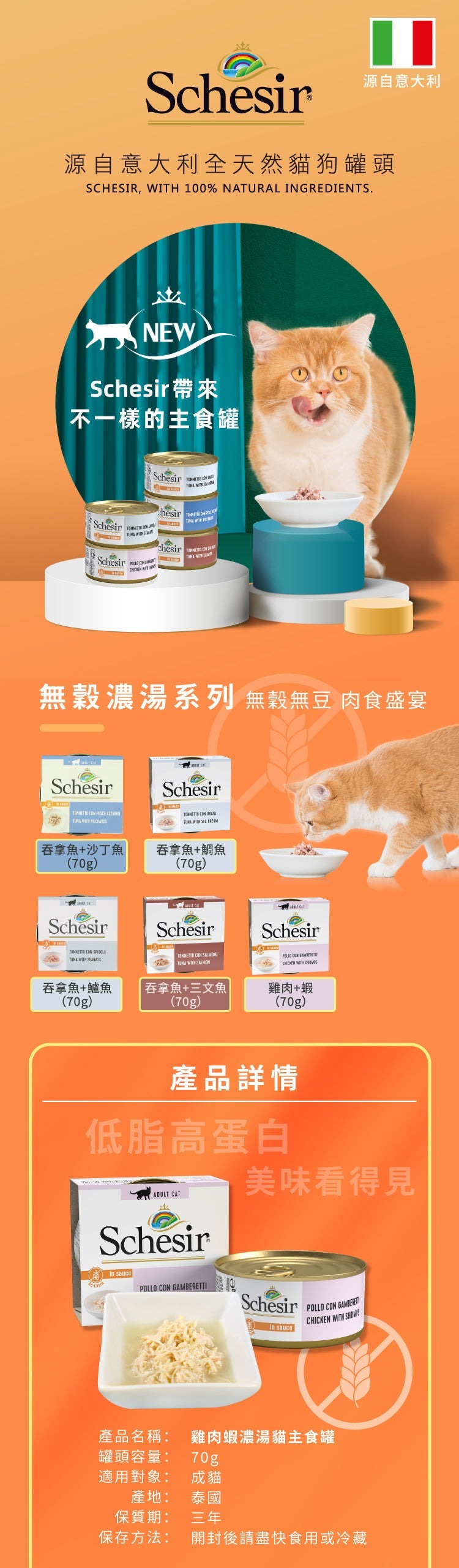 產品配方由義大利著名大學合作研法, 無論營養, 嗜口性都比一般貓罐頭高. 而歐洲銷量連續8年冠軍.