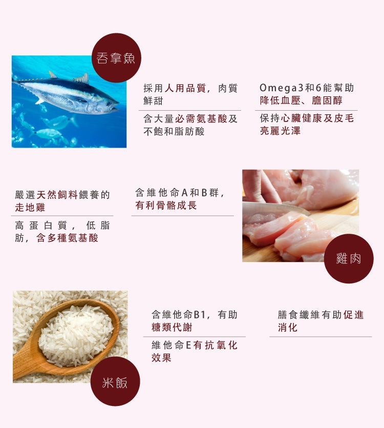 😺嚴選魚和肉最好的部份,經過蒸煮和嚴格的人手加工程序。