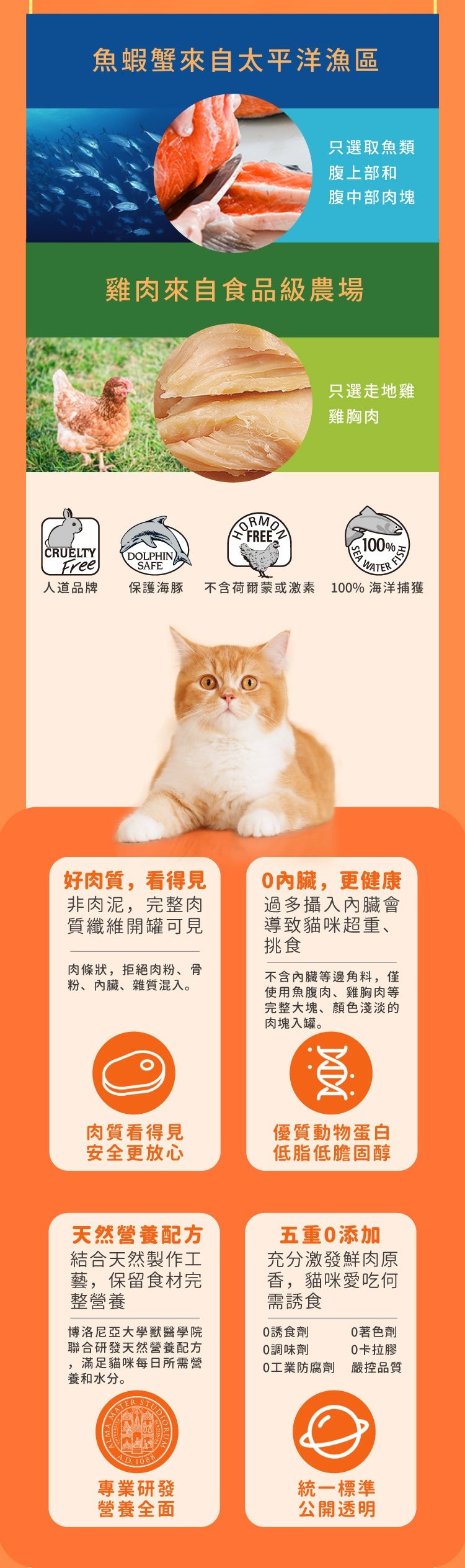 😺嚴選魚和肉最好的部份,經過蒸煮和嚴格的人手加工程序。
