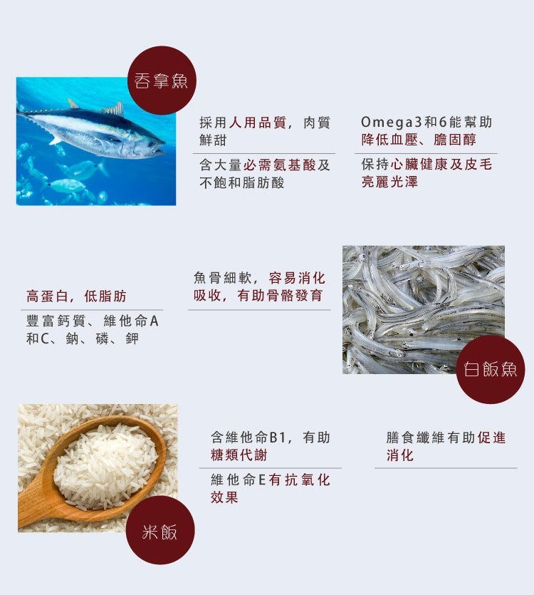 😺嚴選魚和肉最好的部份,經過蒸煮和嚴格的人手加工程序。