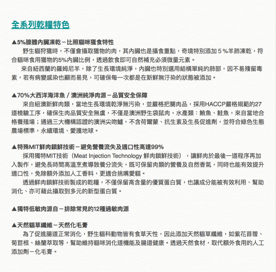 - 澳洲雞肉 + 紐西蘭凍乾羊肉、羊肺