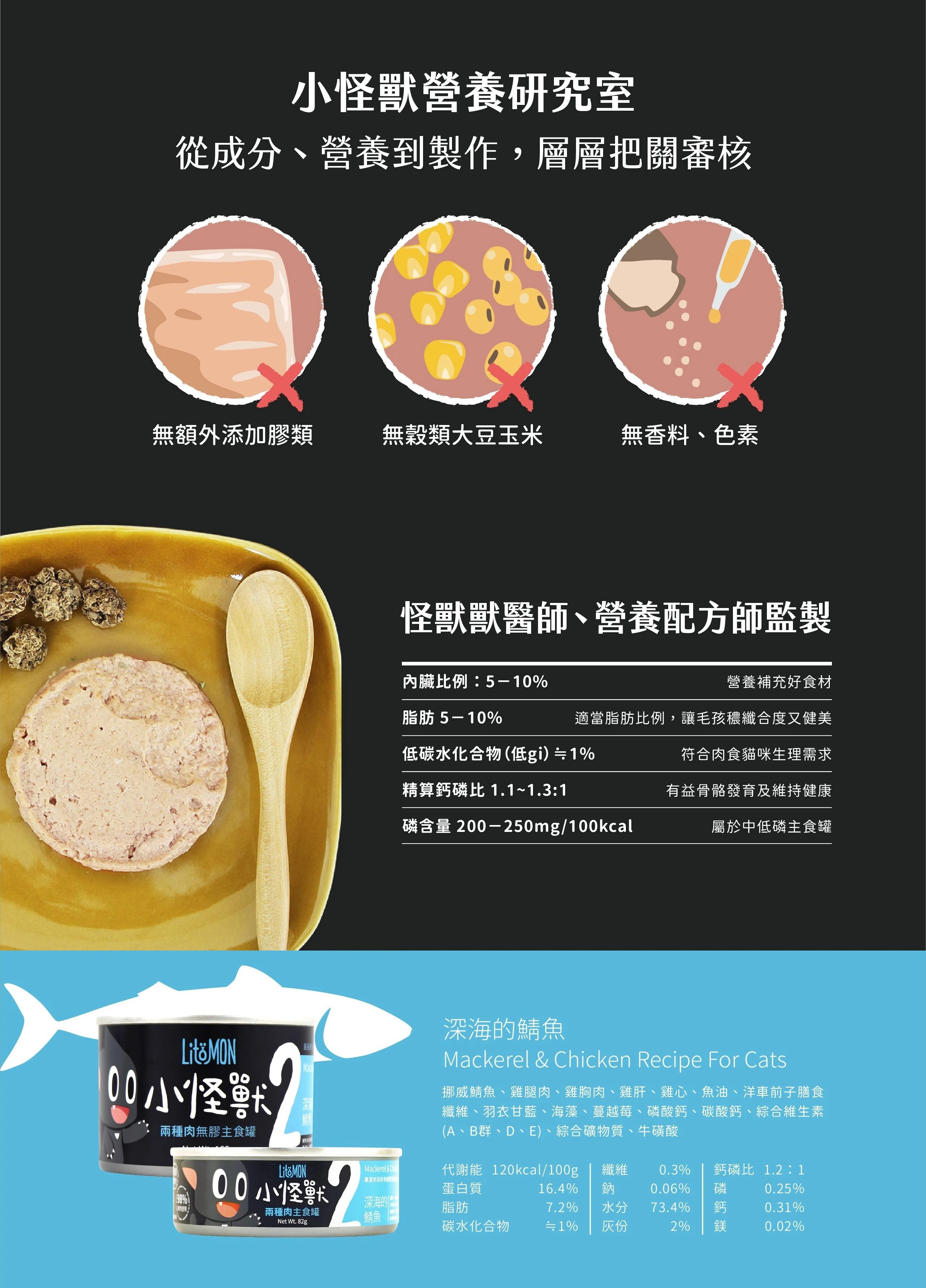 怪獸部落 – 2種肉無膠主食罐 深海鯖魚 (藍) 82g (原箱24罐優惠$342)