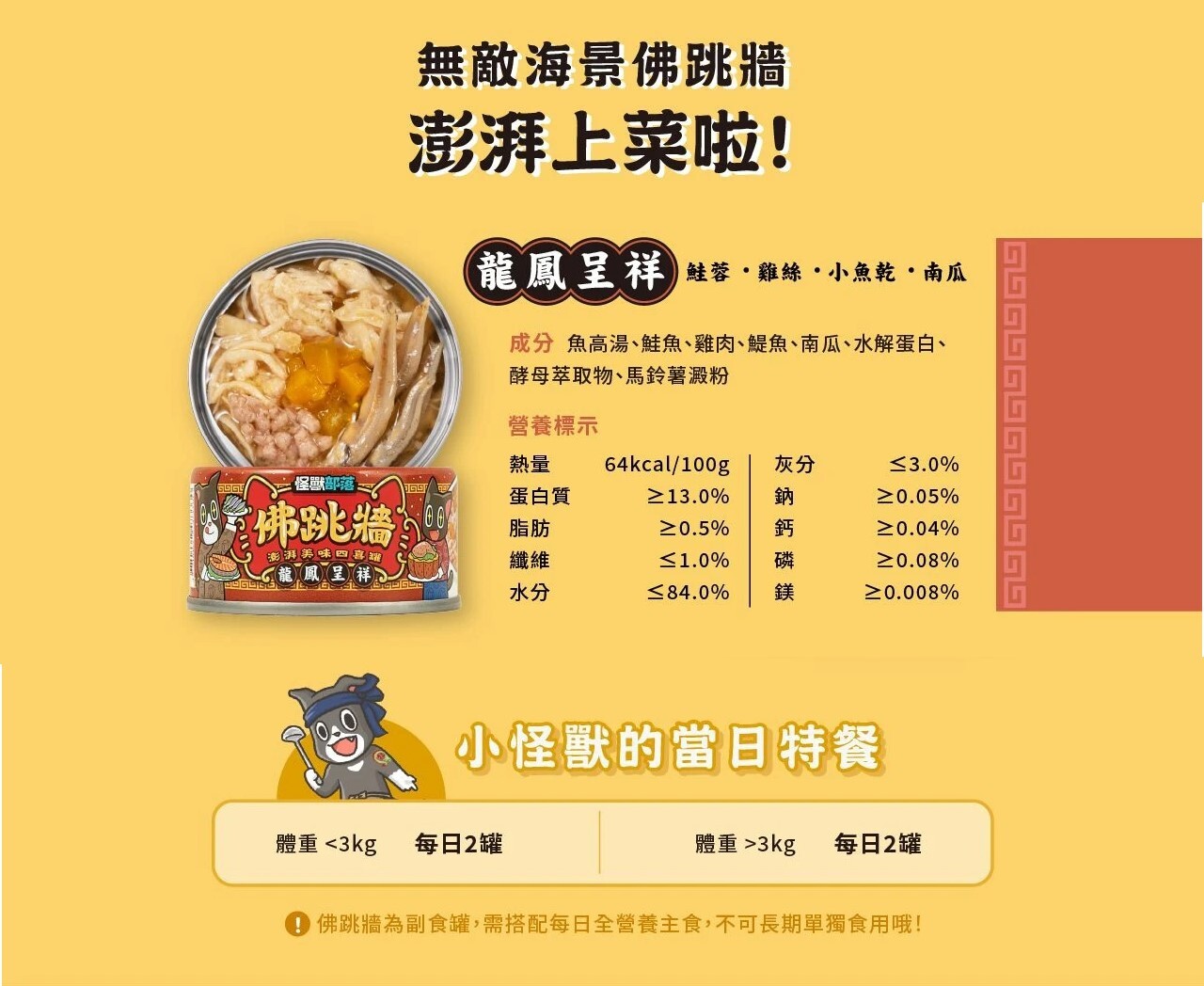 怪獸部落 – 佛跳牆 龍鳳呈祥 (橙) 80g (24罐優惠 $221可混其他佛跳牆)