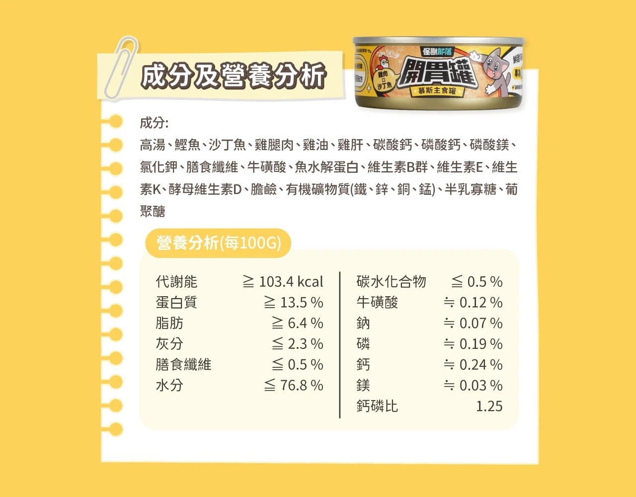怪獸部落 – 開胃慕斯主食罐 雞肉沙甸魚 (黃) 165g (原箱12罐優惠$285)