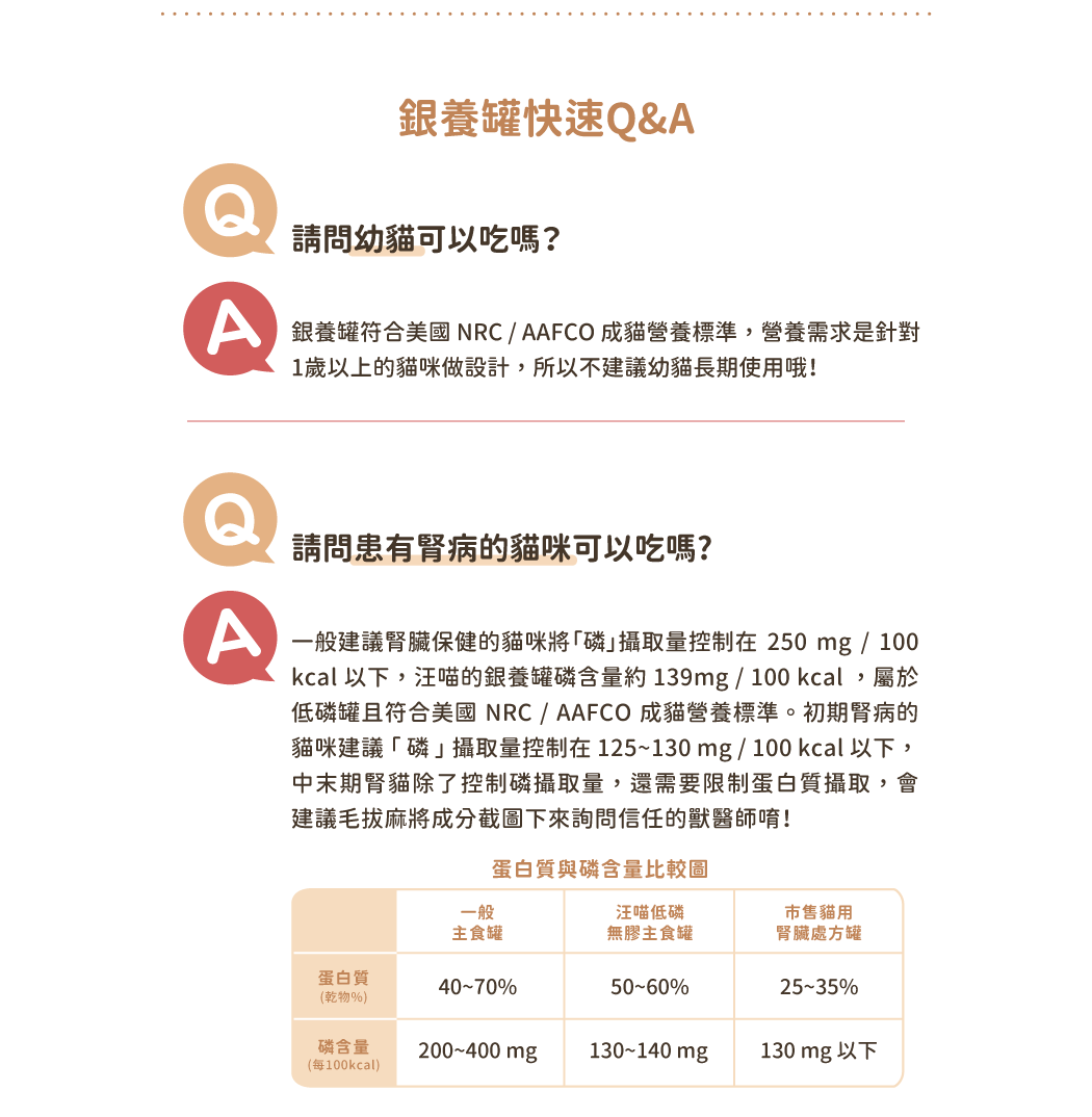 😺銀養罐平均磷含量約 130~140 mg/100 kcal