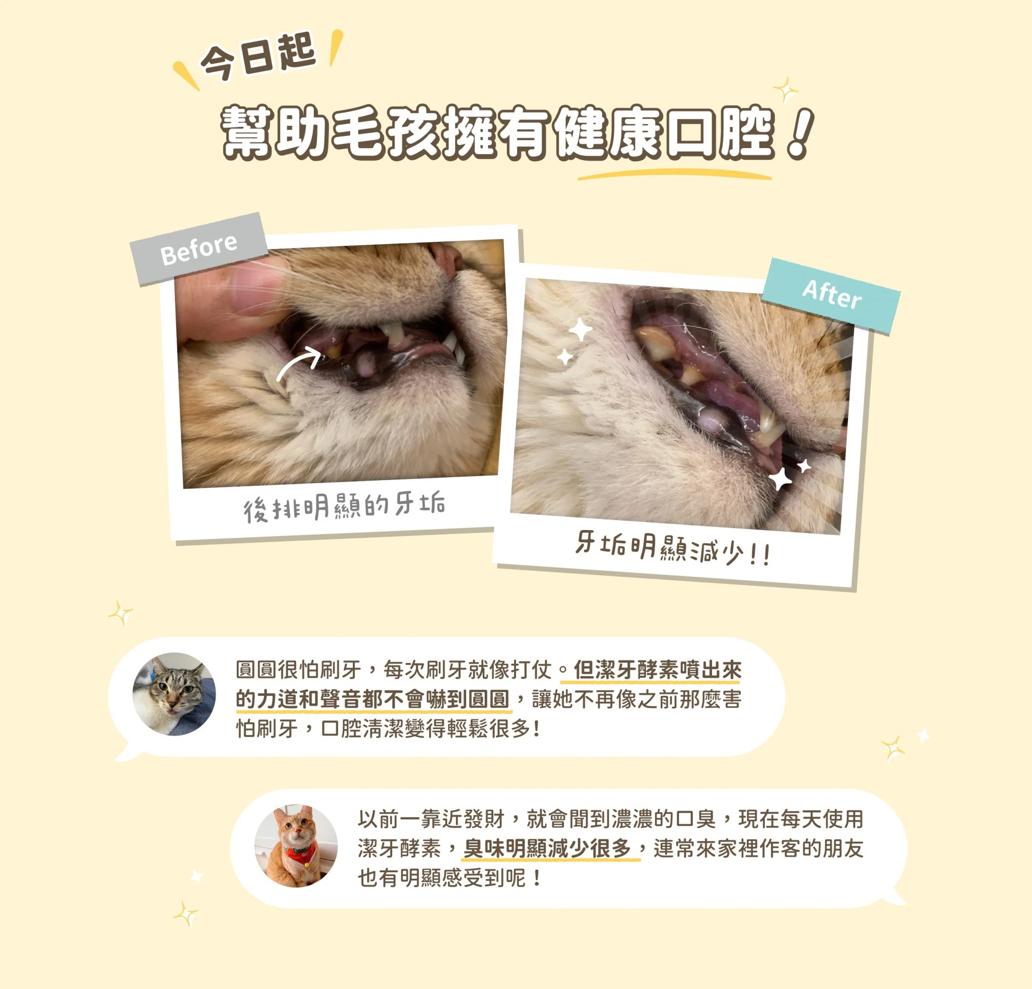 ✔噴灑在食物、飲水中 ✔直接噴於犬貓牙齦兩側 ✔搭配牙刷使用