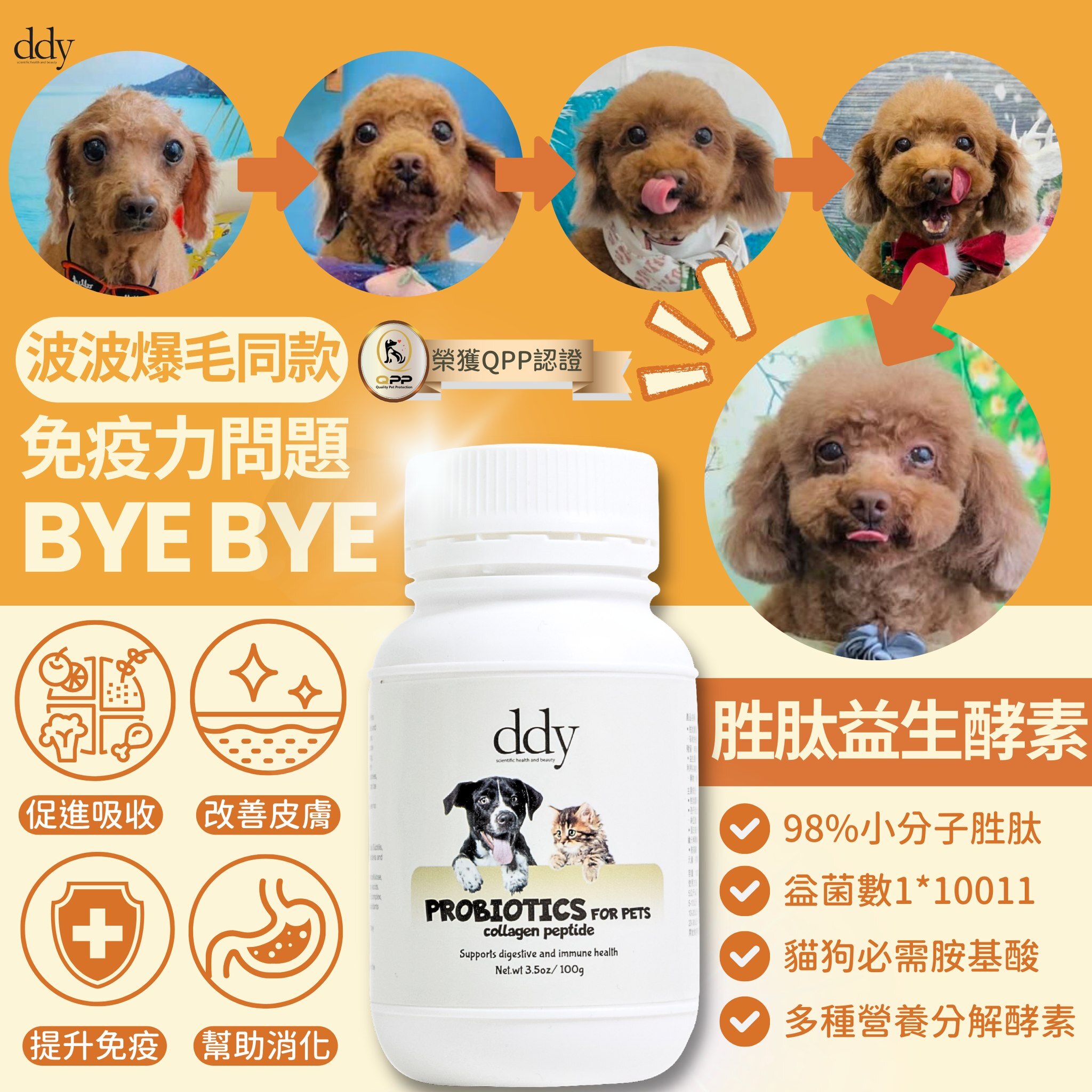 • 促進寵物腸道絨毛增生,幫助消化吸收。